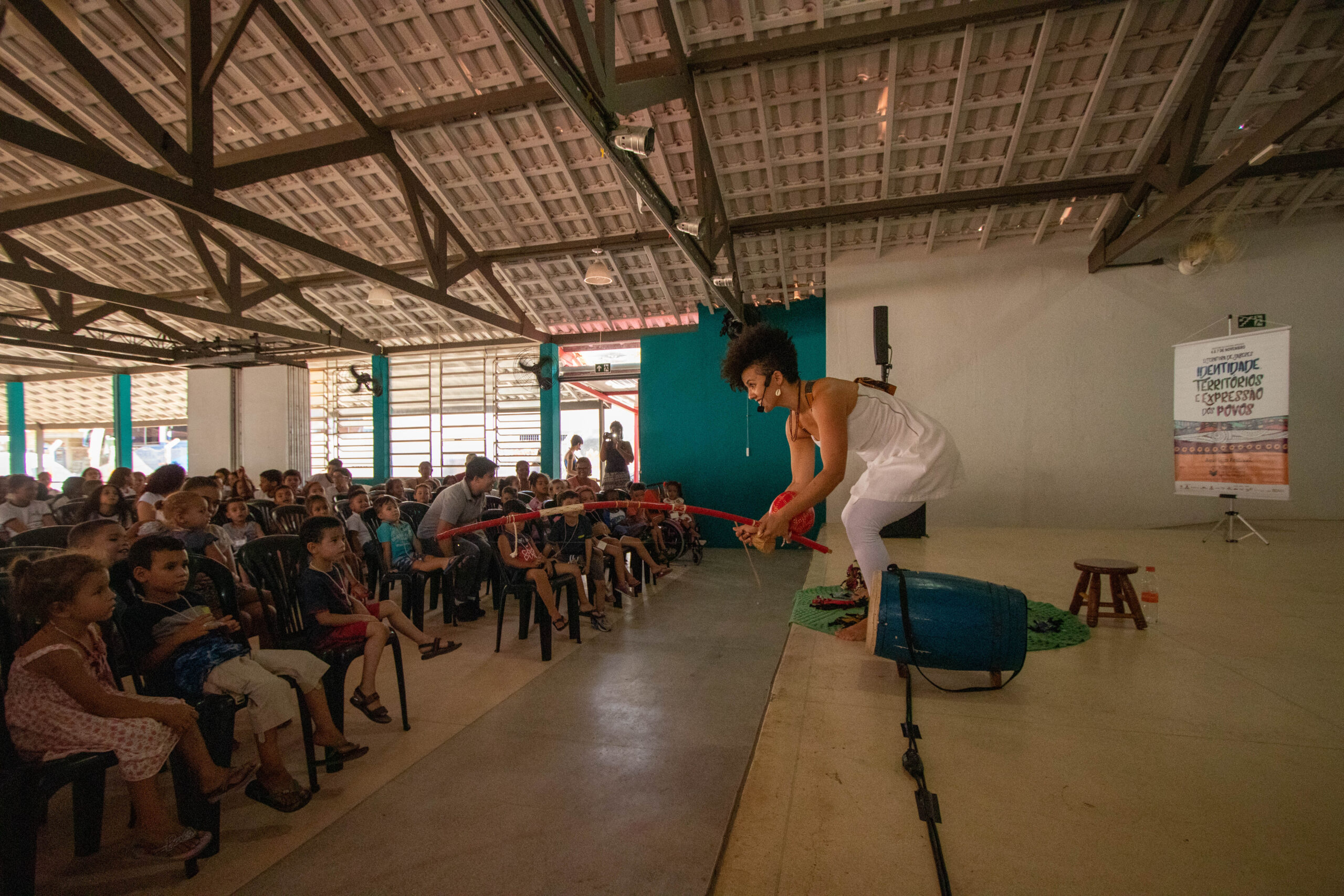 Naquele dia, elas puderam ter contato com histórias e lendas afro-brasileiras apresentadas pelo Núcleo Histórias de Comadres. O grupo apresentou dois espetáculos naquele dia: Dikeledi e as Voltas que o Mundo Dá…, sobre a história da princesa Dikeledi, que teve o corpo transformado em berimbau após morrer; e Dandara, a Guerreira Quilombola, que retratava a história de Dandara, figura lendária da história brasileira que, apesar de ser subrepresentada em aulas de história – quando é -, se tornou um símbolo do empoderamento da população e da cultura negras.