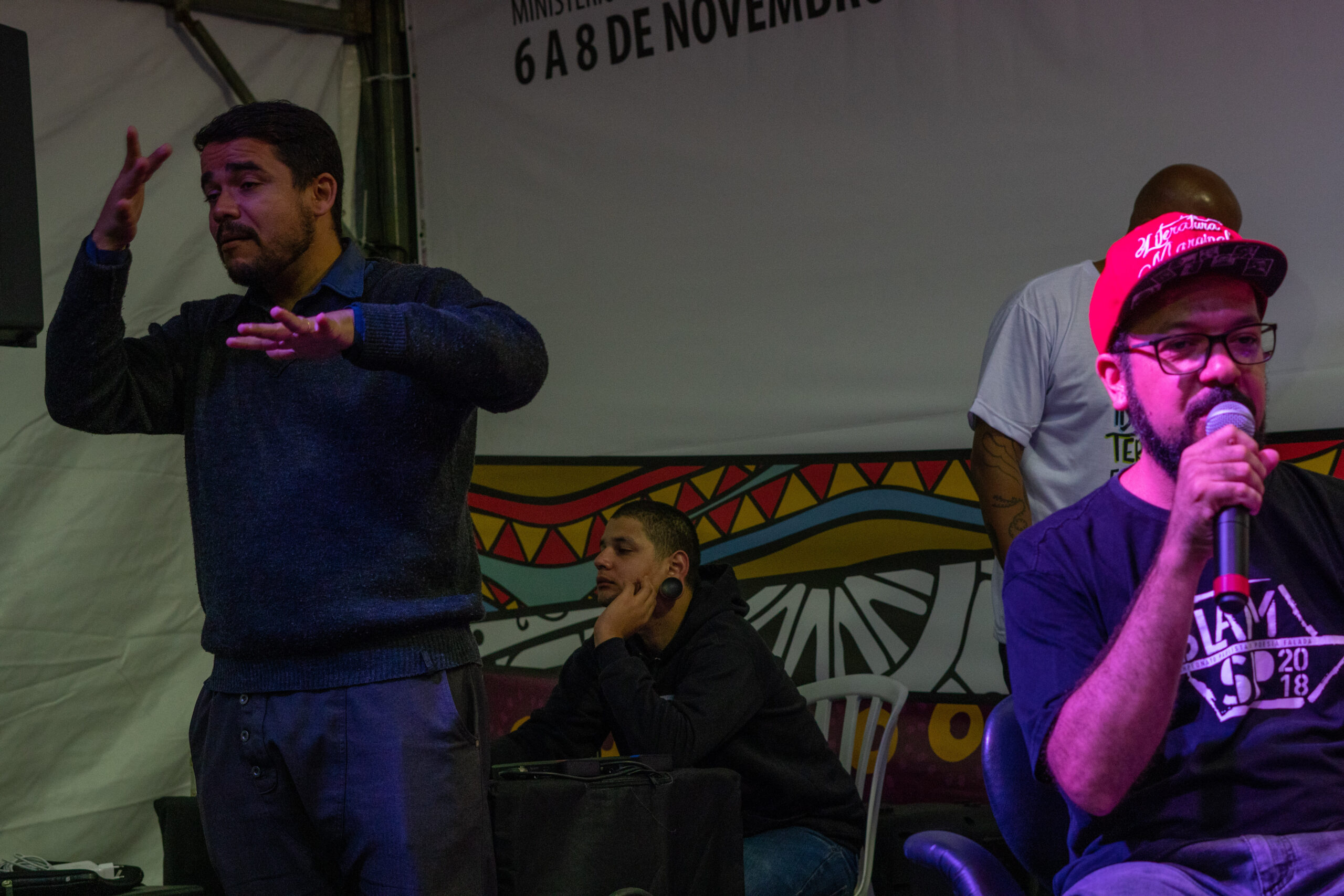 Após a participação de Alcalde, a noite teve sequência com bate-papo entre Maria Vilani, professora, poeta, filósofa e ativista cultural; Jarid Arraes, escritora e cordelista, autora dos livros As Lendas de Dandara, Heroínas Negras Brasileiras em 15 Cordéis, Um Buraco com Meu Nome e Redemoinho em Dia Quente; e Chico Felitti, repórter e escritor, autor de Ricardo e Vânia: O Maquiador, A Garota de Programa, O Silicone e uma História de Amor. A conversa foi mediada por Márcio Black, coordenador de mobilização social da Fundação Tide Setubal.